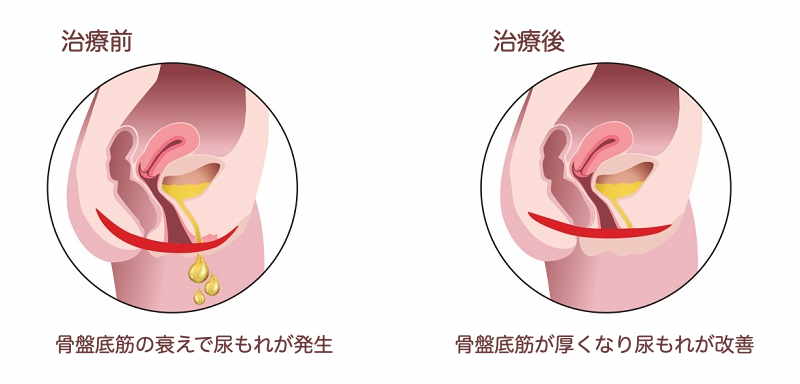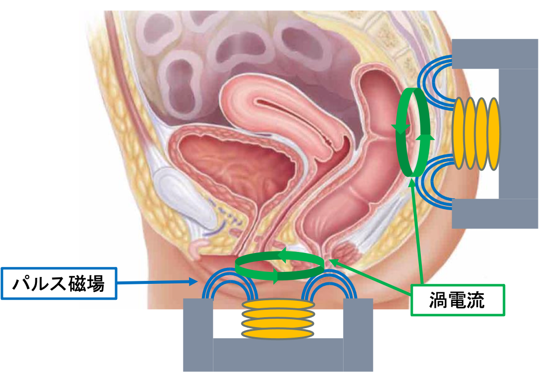 磁気刺激により骨盤底筋が厚くなり尿失禁が改善します。