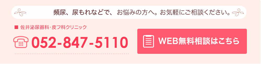 佐井泌尿器科クリニックでは診察時のご予約制度を設けておりません。ご希望の方はご予約を承ります。どうぞお気軽にお越し下さい。遠方からお越しの方でお時間のご心配等がある方はメールもしくはお電話にてご相談下さい。折り返しご連絡させていただきます。