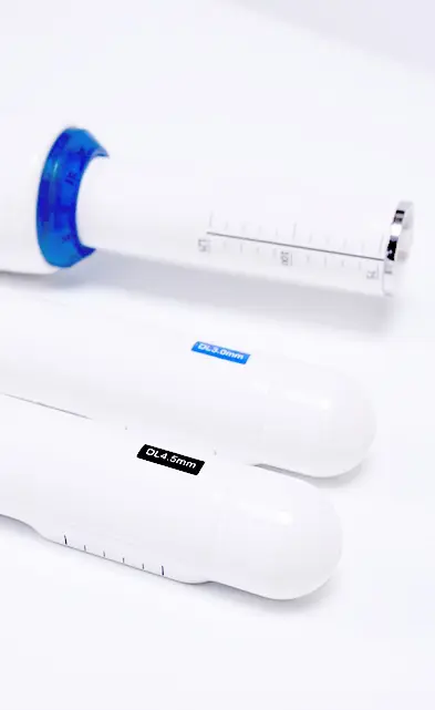 カートリッジは2種類、これを変えることで2つの深さに超音波を照射可能で、各層が点状に加熱されこれによりコラーゲンが縮み、即時的な引き締め効果を感じます。