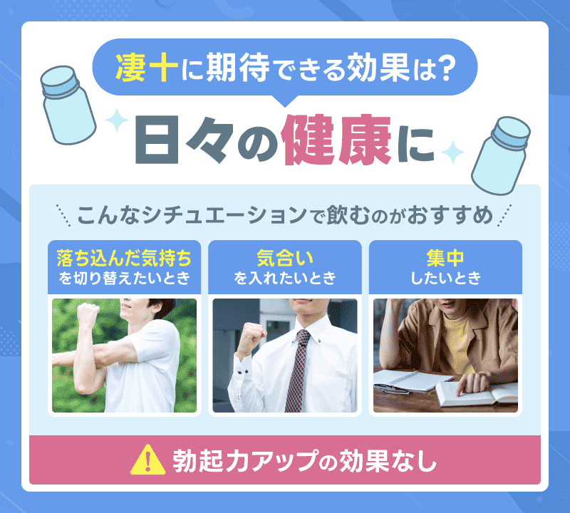 凄十にはEDや勃起の悩みへ効果はないので、クリニックを受診しましょう。